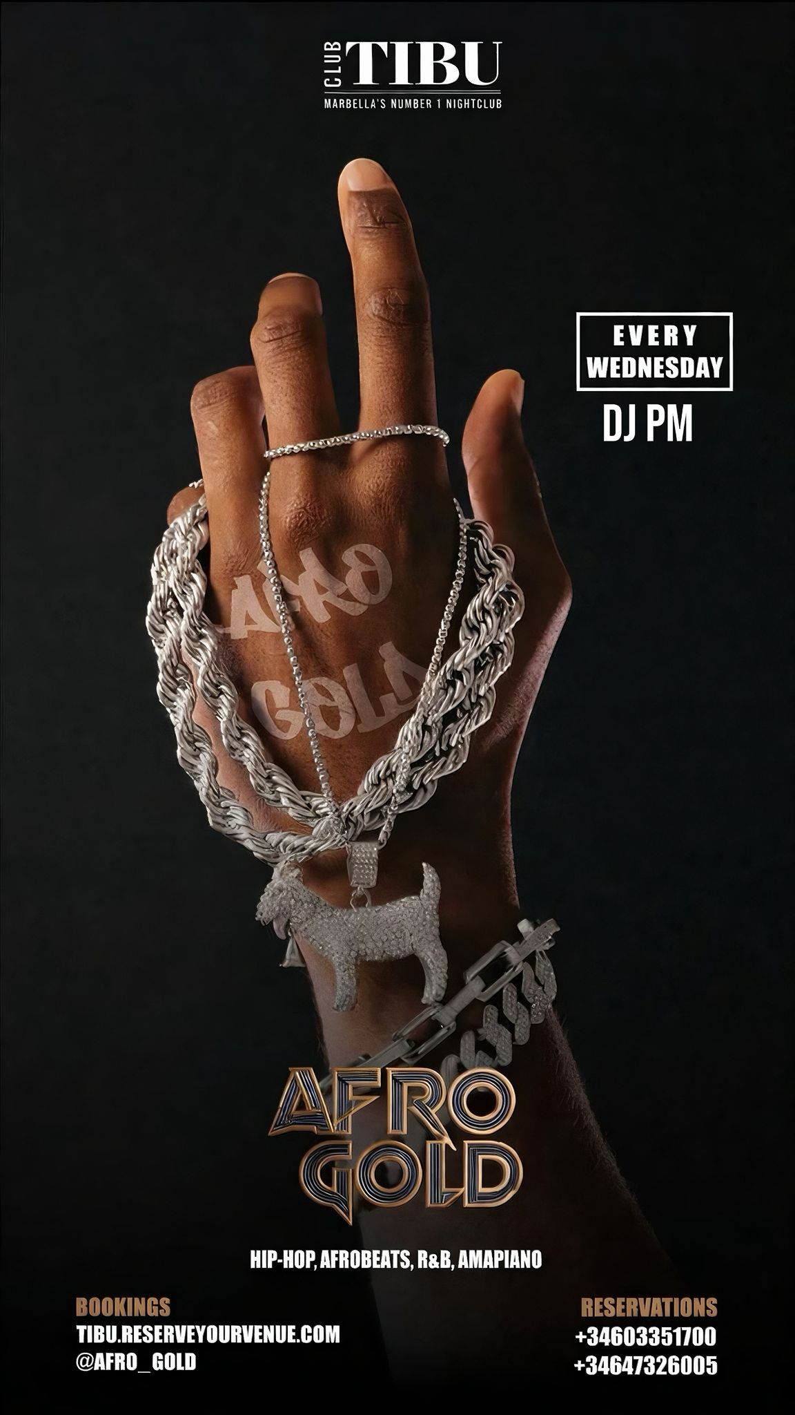 14 May 2026Friday nights at Tibu are strictly for the Bad & Boujee. Expect the best in RnB, Hip Hop, afrobeat and house with regular special guests and your favourite Marbella residents, Jordan Valley...Read Mores and DJ PM. Launching Friday 1st May and running every Friday until September and like always, Tibu is the only place to be on a Friday night in Marbella. Tables are strongly advised - secure yours today Read Less