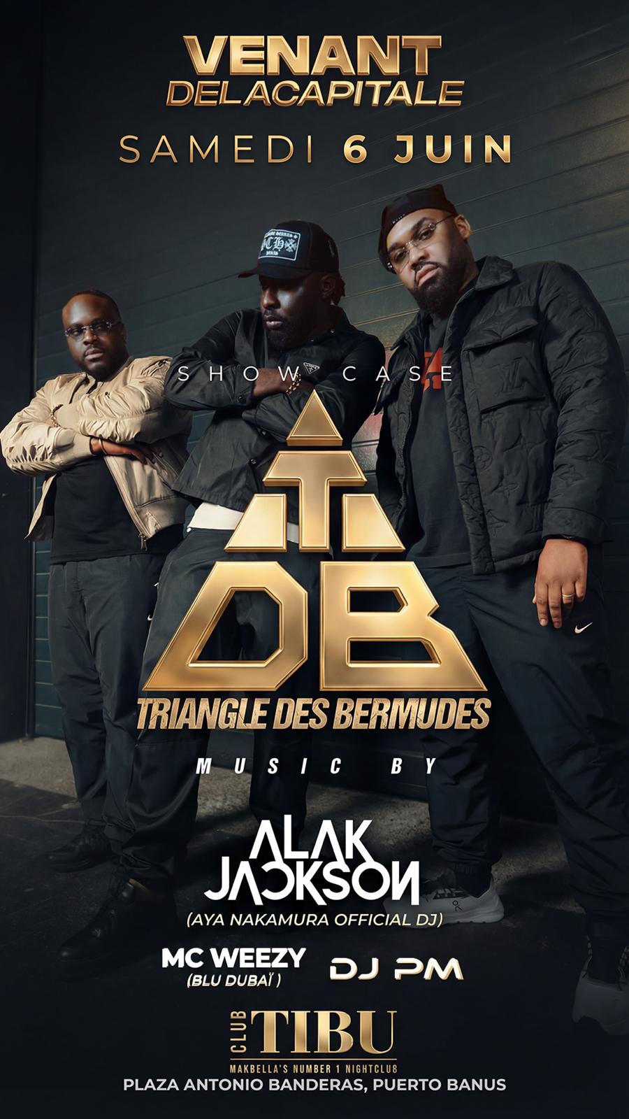 05 Jun 2026Every Saturday From Paris To Marbella, Venant De La Capitale presents Live at TIBU, with live showcase from Triangle des Bermudes performing hits including Charger, with Alak Jackson, MC WEEZY & DJ PM, bringing you the finest in French Urban, Hip-Hop, French Rap, RnB and more .. These events sell out – book now.